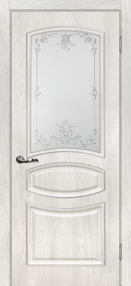 Качественная Межкомнатная дверь Сиена-5 Дуб жемчужный продается по цене 12 697 руб. за полотно. Доступные размеры 550x1900, 600x1900, 600x2000, 700x2000, 800x2000, 900x2000. Так же в наличии большой выбор комплектующих к данной модели, подходящих по цвету и фактуре.