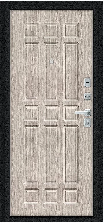 Надежная входная Дверь Браво Мило МФ/BChrome Букле черное/Cappuccino Melinga премиум класса по цене 34 831 руб. Большая толщина стали защитит от проникновения в ваш дом, квартиру или коттедж. Используется очень качественная фурнитура: замки, цилиндры, ручки, защелки. Покрытие и отделка двери изготовлено под внимательным контролем производителя. Дверь имеет долгий срок службы и гарантию.