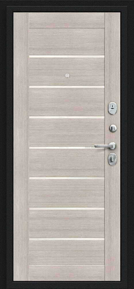 Надежная входная Дверь Браво Техно Букле черное/Cappuccino Veralinga премиум класса по цене 32 681 руб. Большая толщина стали защитит от проникновения в ваш дом, квартиру или коттедж. Используется очень качественная фурнитура: замки, цилиндры, ручки, защелки. Покрытие и отделка двери изготовлено под внимательным контролем производителя. Дверь имеет долгий срок службы и гарантию.