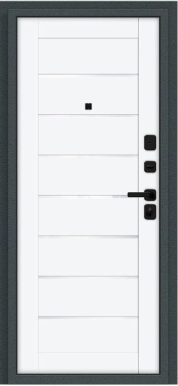 Надежная входная Дверь Браво Техно/SBlack Старк антрацит/White Silk премиум класса по цене 36 831 руб. Большая толщина стали защитит от проникновения в ваш дом, квартиру или коттедж. Используется очень качественная фурнитура: замки, цилиндры, ручки, защелки. Покрытие и отделка двери изготовлено под внимательным контролем производителя. Дверь имеет долгий срок службы и гарантию.